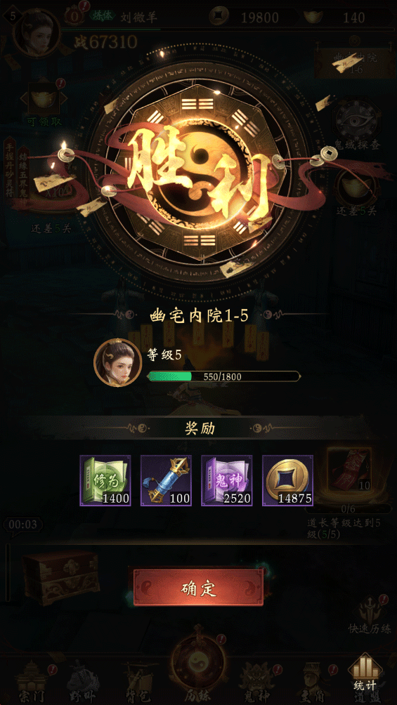 主角等级经验的主要来源,关系到后期玩法系统开放的速度与资源获取的速度,总结起来也简单,就是推图推到告诉你要升级之后才能打下一关了,点历练旁边的箱子,获取挂机经验,当前推的图越远,挂机获得的经验越多;当快要下线或者是实在卡等级了,也可以点点右边的快速历练,获取两个小时历练经验