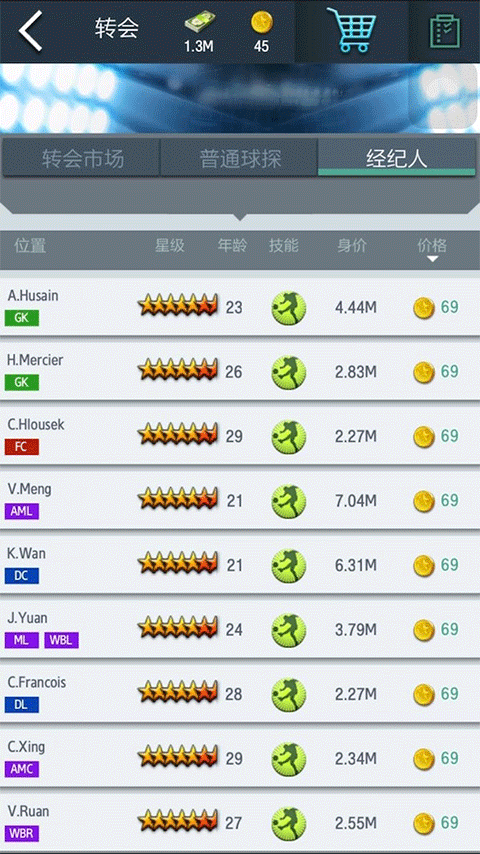 如果说球探搜索到的球员是种子球员后期有培养的天赋,那么经纪人签约来的球员就是夺目的球星。拥有强大的个人能力以及独有的技能,他们可能是我们足球帝国里的梅西或C罗。但好的球员肯定需要付出不小的成本,金币+正常签约费对一般玩家来说还是很高的;