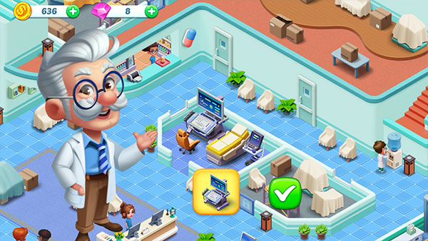 4、装饰你的医院,你可以设计不同风格的设备,打造属于自己的医院;