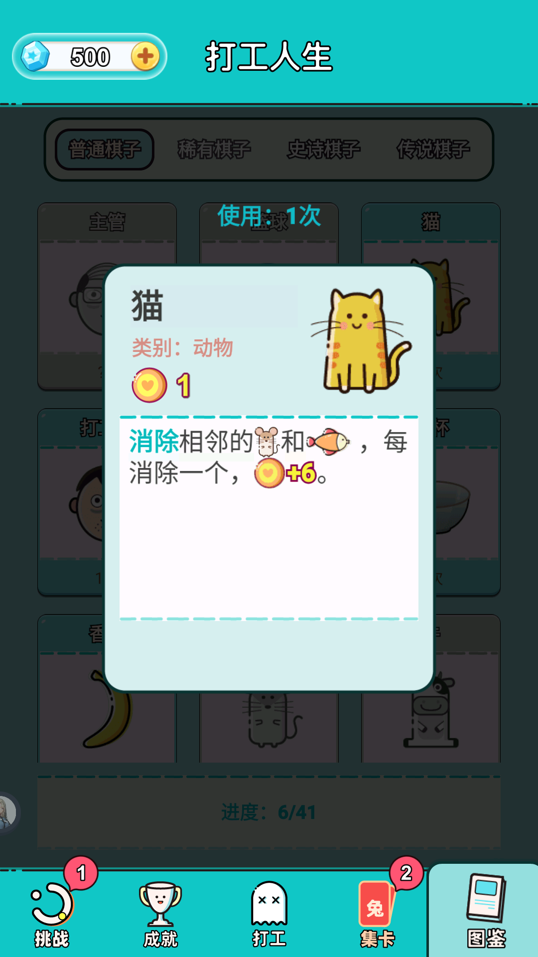 打工人生是一款休闲益智类的卡牌手游。玩家将扮演因创业失败而负债累累的打工人,通过卡牌构筑玩法,合理搭配具有特殊效果的棋子卡牌来提升收益,努力在20年内还清债务。游戏将网络流行梗融入其中,充满趣味,同时大量随机事件让游戏充满变数。并且游戏操作简单易懂,适合各类玩家,能让玩家在轻松的氛围中体验打工生活的酸甜苦辣。