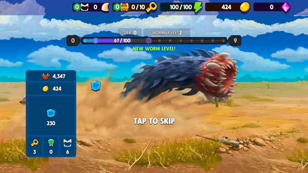 4、你需要不断的钻出地面,袭击上面的动物、人类以及各种车辆、飞机等人类社会的文明产物;