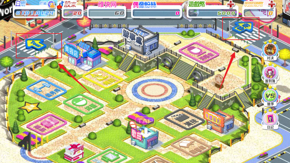 3、图下右侧的箭头隐藏着触发特殊事件的秘密。想要了解事件发生的具体细节,不妨查看日记中的提示(点击问号)。而左侧的箭头则指向海外巡演,这是一个提升公司国际影响力的好机会。但需要注意的是,海外巡演更适合在后期进行,以确保公司有足够的资源和实力应对各种挑战。
