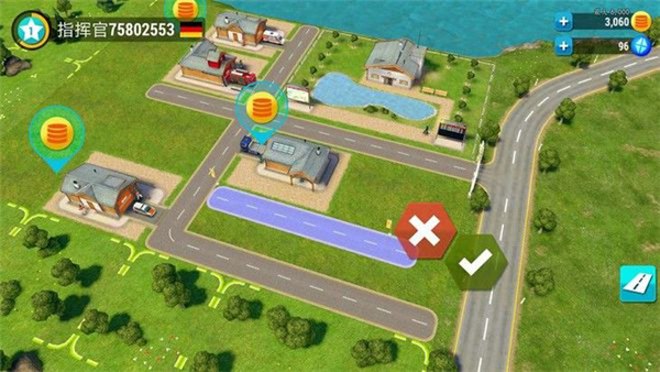 2、在游戏的家园页面点击屏幕右侧商店上边的公路图标可以修建公路,在修建公路是玩家可以随意在地图中通过滑动屏幕修建,画好修建路线后点击对号就可以完成修建。