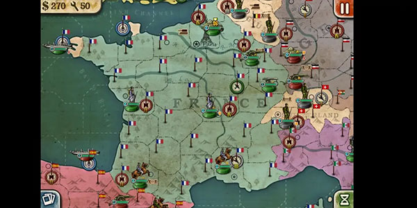 法国也拥有和德国一样的先天优势:科技和资源,三个中立国只要争取到位,就多出好多钱,但是为什么把他排在意大利后面呢,因为法国是目前第一个南北作战的国家,俄罗斯起码是打三个国家连成一条战线,法国的是南北断开,但凡有一个出事就会面临左右为难的局面,法国经济不如德国,南部兵力还缺少,容易被西班牙钻空子,正面若是硬碰硬很容易被德国打到巴黎,法国要求玩家对两线作战的细致观察,合理及时分配兵力。