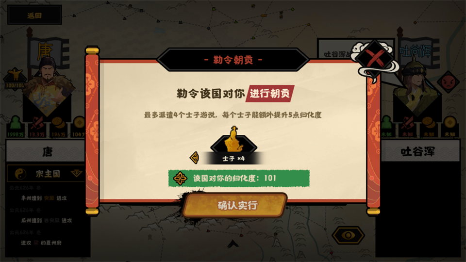 短时间内提高全图所有国家的归化度,进而勒令突厥、吐蕃、吐谷浑、望衍成为我们的朝贡国。