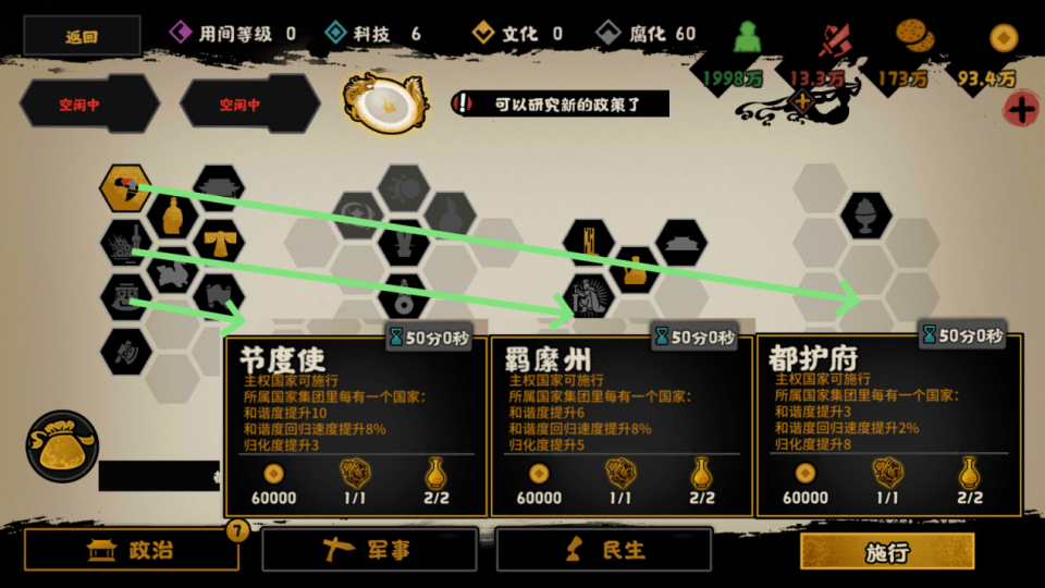 在拥有足够的朝贡国后,通过剧本政治政策【都护府】、【羁縻州】、【节度使】